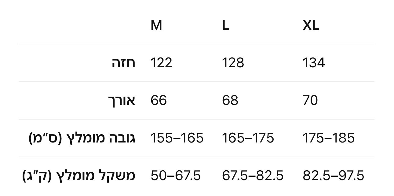 | מידה | M, L, XL |