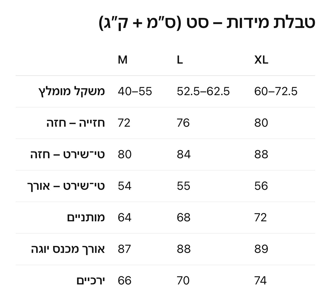 | מידה | M, L, XL |